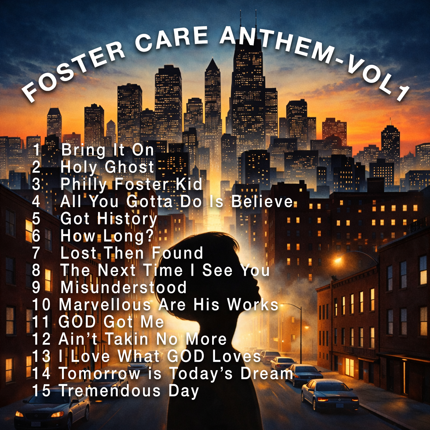 Foster Care Anthem — VOL1 is a story-driven music release created to raise awareness, honor lived experience, and reflect God’s heart for children and families impacted by foster care. Blending faith, testimony, and social conscience, the project moves through themes of loss, resilience, belonging, and hope—centering the voices and stories often overlooked in the foster care system. This volume serves as the foundation of a larger music and media initiative designed to support awareness, creative engagement, and meaningful conversation around foster care and adoption.